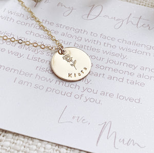 Birth Flower and Name Necklace (comes with Daughter Card) - Single Large Disc