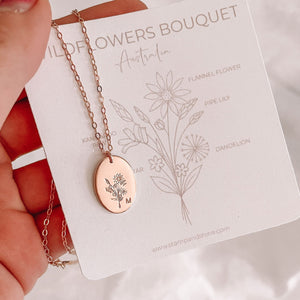 Australia Wildflowers Bouquet Necklace - Oval Disc