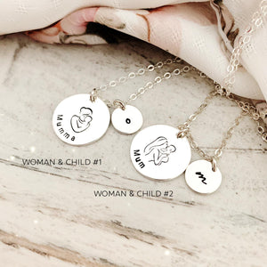 Classic Woman & Child Disc Necklace - Large & Mini Discs