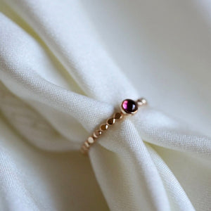 Our beautiful birthstone rings are completely handmade and each one set with a stunning, genuine 4mm gemstone on our sweet dot band.
