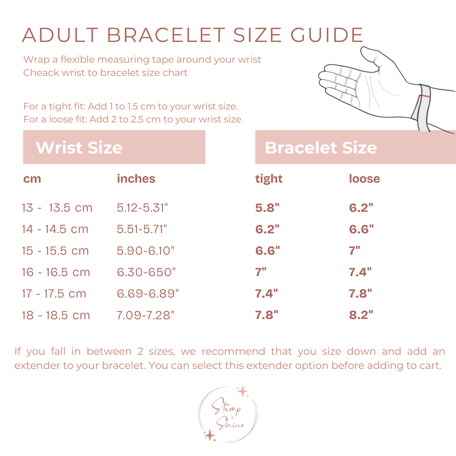 Each Stamp + Shine piece is made from scratch in our little studio in Melbourne, Australia. The process begins with a clean metal sheet/ wire, which is then cut, polished, hand stamped, drilled, filed and assembled by hand into its final form. As a result, there will be slight variations in spacing and alignment, no two pieces are ever the same and this is the beauty of each handmade piece from Stamp + Shine.