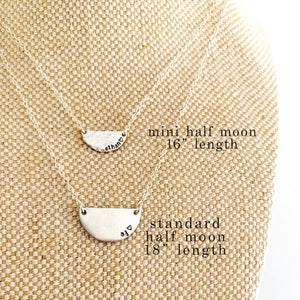 The mini half moon necklace is a smaller version of our bestselling half moon and is the perfect layering piece.